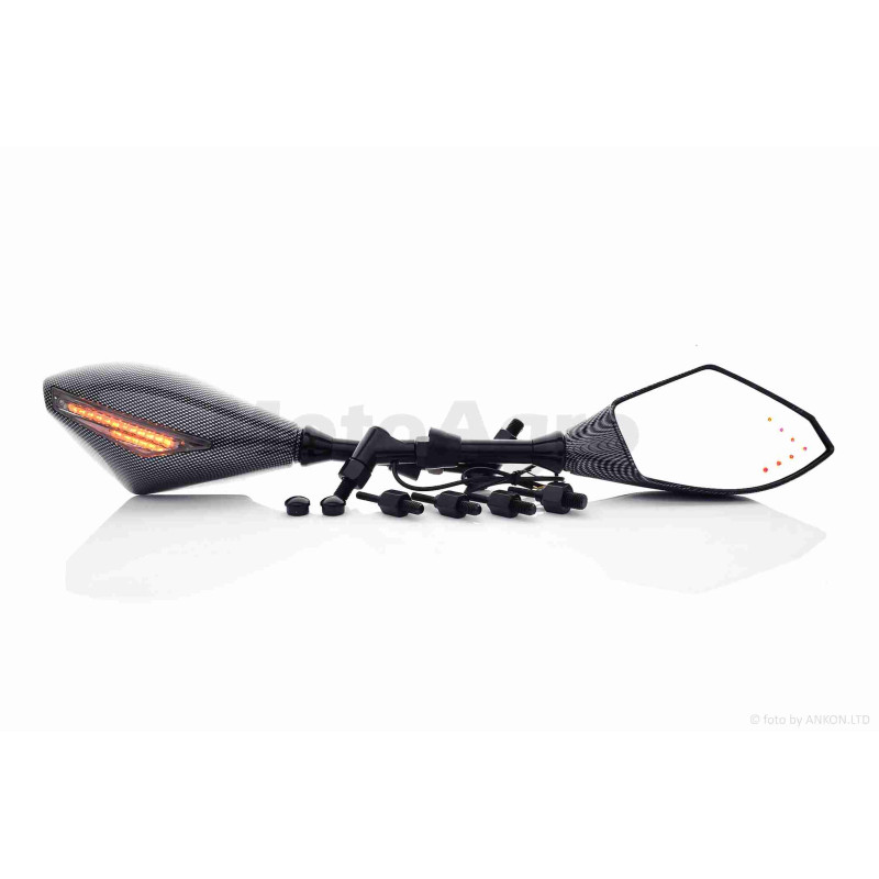 Дзеркала мото з діодними повторювачами повороту карбон, 8/10mm #172